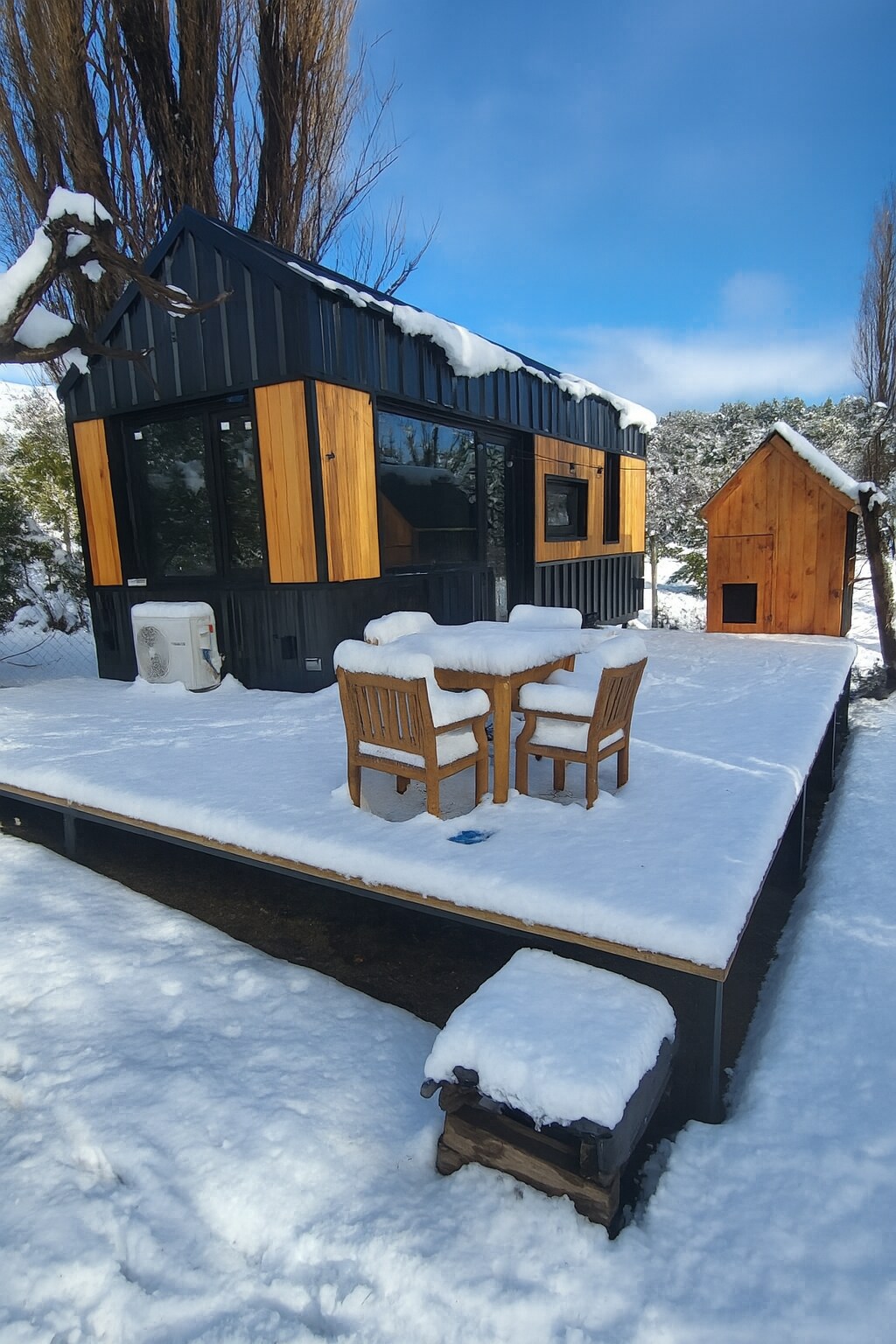 Discover Tiny Lolog, an exclusive tiny house designed for those seeking rest, design and connection with nature. Located 20 minutes from downtown San Martín de los Andes and steps from Lake Lolog and the Quilquihue River, this retreat combines modern comfort with the calm of the forest and the mountain. Ideal for couples looking to disconnect and live a natural experience with all the comforts. An intimate refuge in the middle of Patagonia, where nature invites you to breathe slowly.