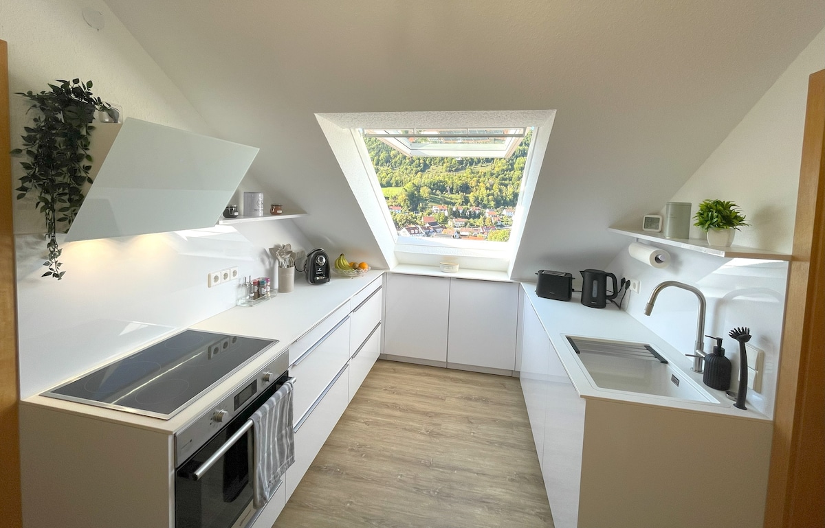 Welcome to our newly renovated (October 2022), charming and quiet top floor apartment in a rural area (near Metzingen). Enjoy the view of the beautiful landscape with a coffee from your own balcony. Hiking, cycling/mountain biking, thermal baths or outlet shopping, all nearby. A train leaves Dettingen every hour during the day in the direction of Outletcity Metzingen.