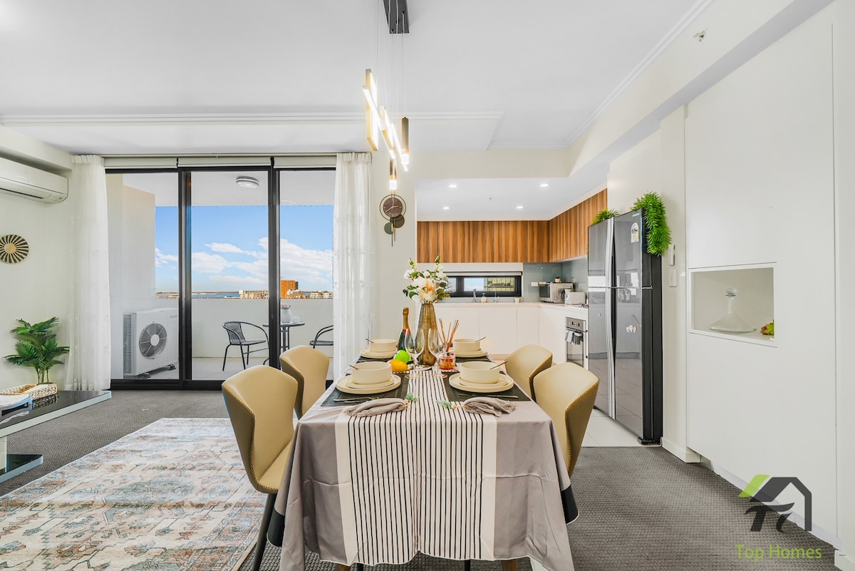 It's great for a staycation, as a work-from-home alternative, or for families. High-end apartment with city view & 2 car parking. High level with expansive city view. Woolworths is downstairs.Only 5 mins walk from the train station.2 bedrooms both with 2 Queen size bed n pull out sofa bed. Windows overlooking the beautiful city day and night. Swimming pool and Gym in the building. Walk distance to Westfield Shopping Centre, Supermarkets n 100+Restaurants.20mins to Sydney CBD by train.