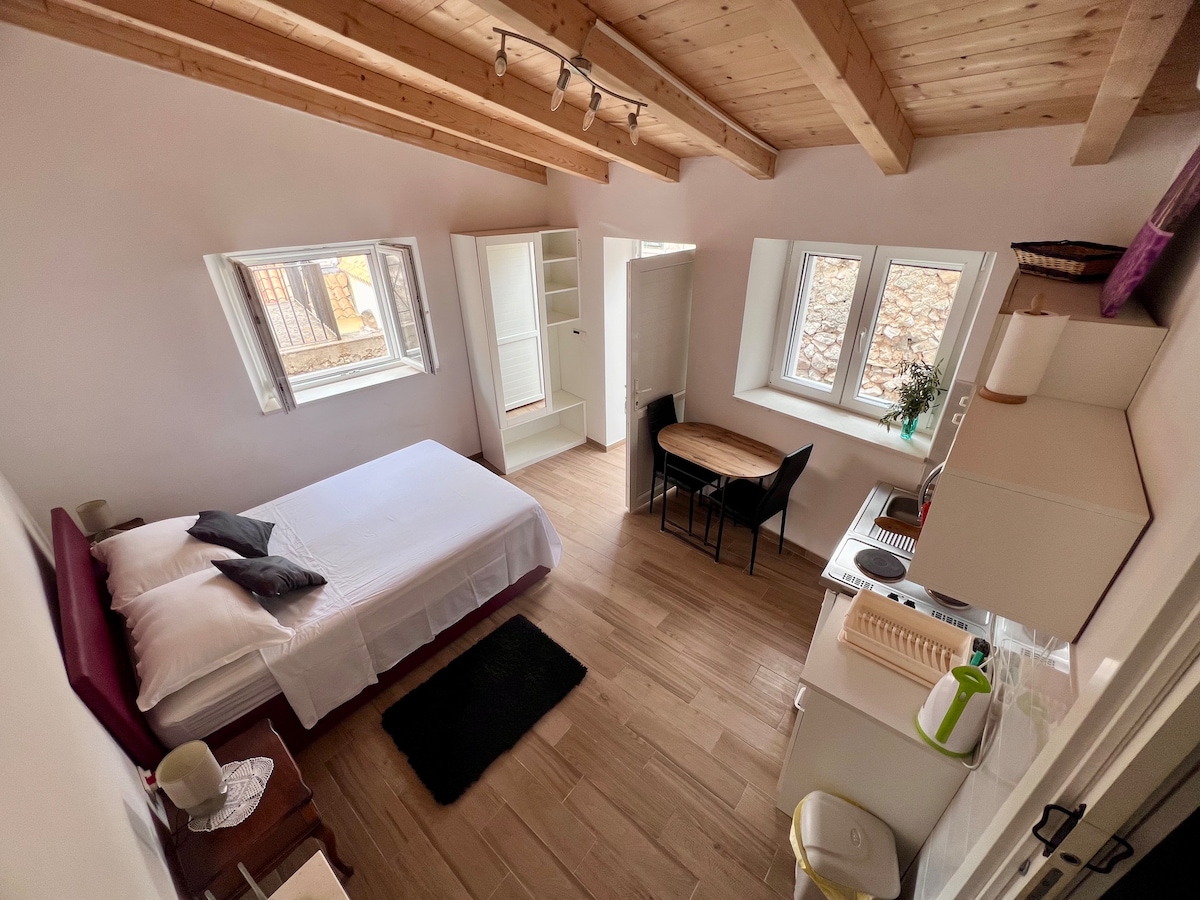 The apartment is located on the first floor of the stone house. The house is located on the south side just below the fortress. It consists large living room, dining room and kitchen along a hallway bathroom internet, air conditioning, piano and a large terrace with a beautiful view.