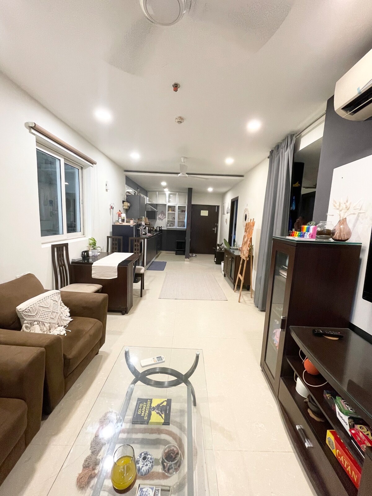 Well located and accessible through ORR, PVNR flyover. Fully furnished two bed rooms, one attached and one common washroom and an average equipped kitchen. The second bedroom has a single bed while the first bedroom has a queen sized bed. The society has 2000+ homes with well equipped common facilities like swimming pool, gym, multiple sports facilities, children’s playground, etc. The Airport is 25 minutes away and most of the city is accessible by the elevated express way.