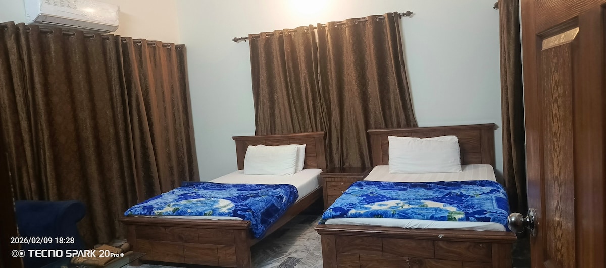 Enjoy a modern, budget friendly residence located right in the midpoint of the city , giving you quick access to markets, restaurants, hospitals and all major areas. Clean and well maintained ground portion perfect for solo travelers, couples, families or guests who want comfort, convenience and privacy. Cherry on the top is free safe car parking.