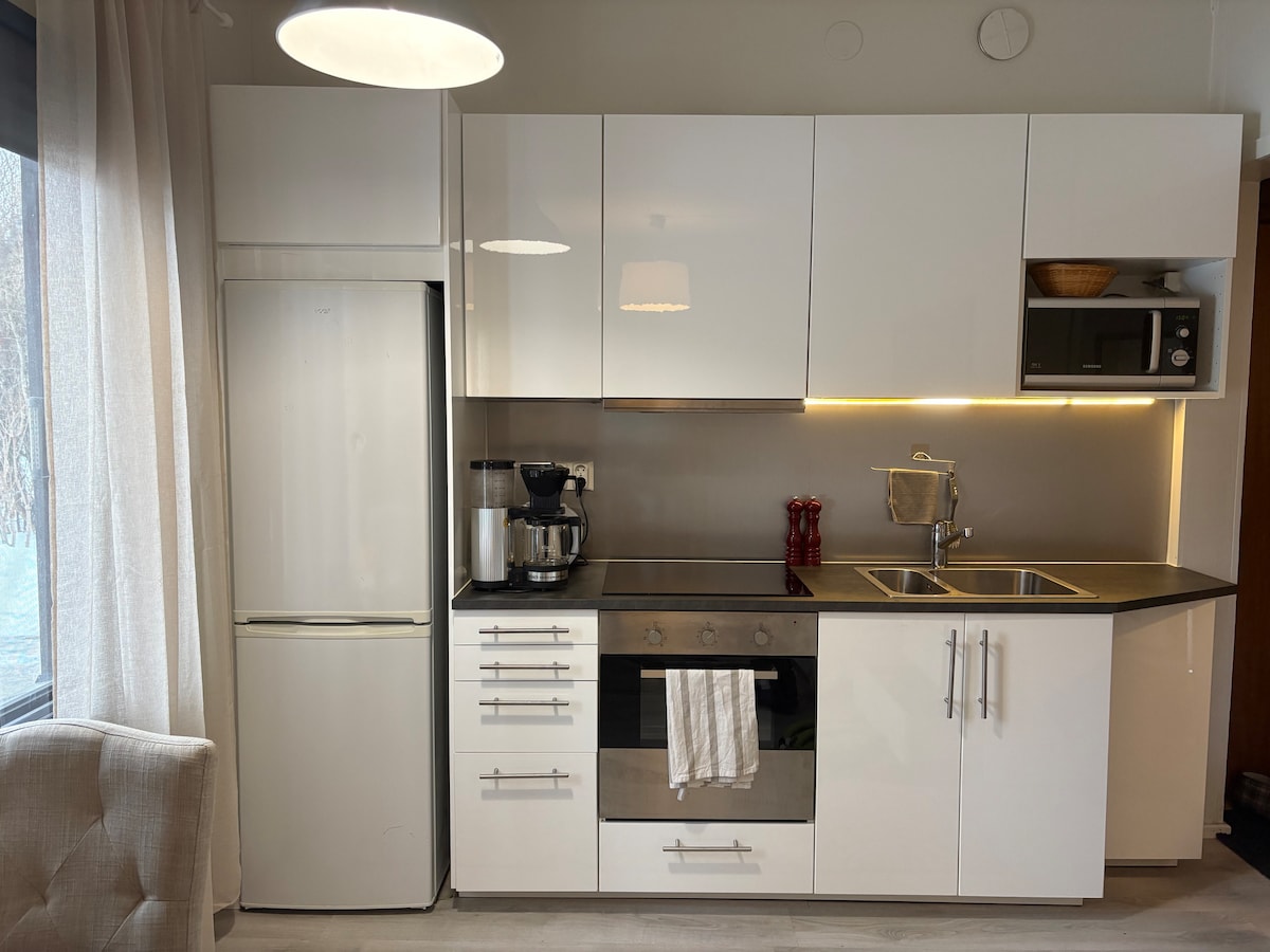 Nordic style apartment 13 minutes walk from Hyvinkää train station. Apartment has one bedroom, living area, kitchen and cosy glassed-in balcony and it is located in the ground floor. Kitchen is equipped with dish washer, oven, stove and microwave oven. In your private newly renovated bathroom you have washing machine and a shower. Private parking slot is in the front of the building. By train you reach Helsinki in 45 minutes.