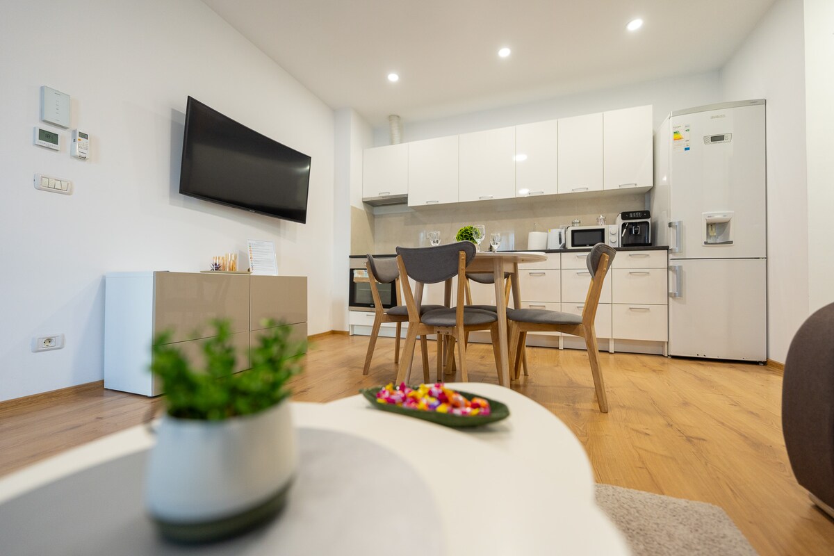 Welcome to your cozy getaway! Kick back and relax in this calm, stylish studio. My charming apartment features a comfortable 180x200 cm bed and is perfectly situated just 400 meters from the Iulius Town (5 minutes by foot) and 1km away from the historical and cultural city center. Iulius Town is the busiest place in the city. Here, you can find any restaurant you want, any café you like, and any store you want to shop in. It's really the place near you want to stay when you come to Timisoara