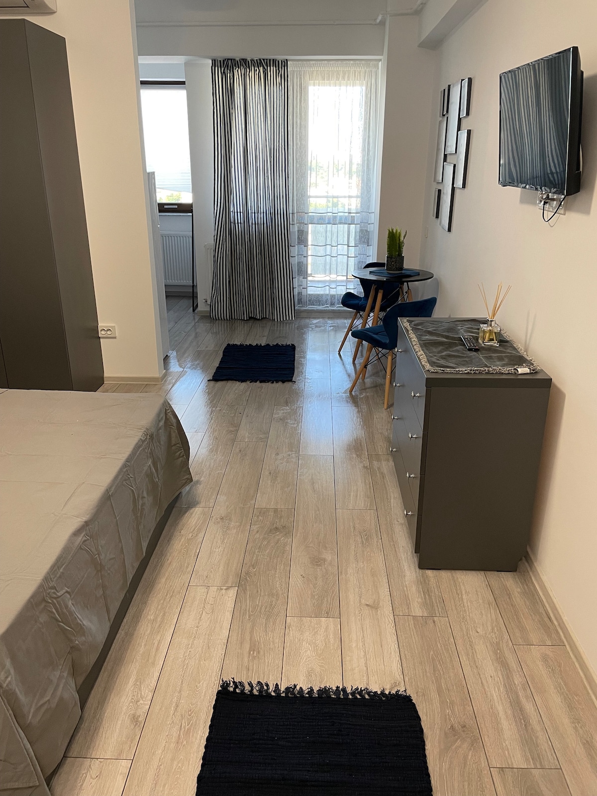 Welcome to our beautiful and modern apartment, located in the heart of the city! The apartment features a spacious and cozy bedroom with a comfortable queen-sized bed, plush linens, and plenty of closet space. The living room is bright and airy, with large windows that let in plenty of natural light. It's the perfect place to relax after a long day of sightseeing or work, with a comfortable sofa, a flat-screen TV. We look forward to hosting you in our beautiful apartment!