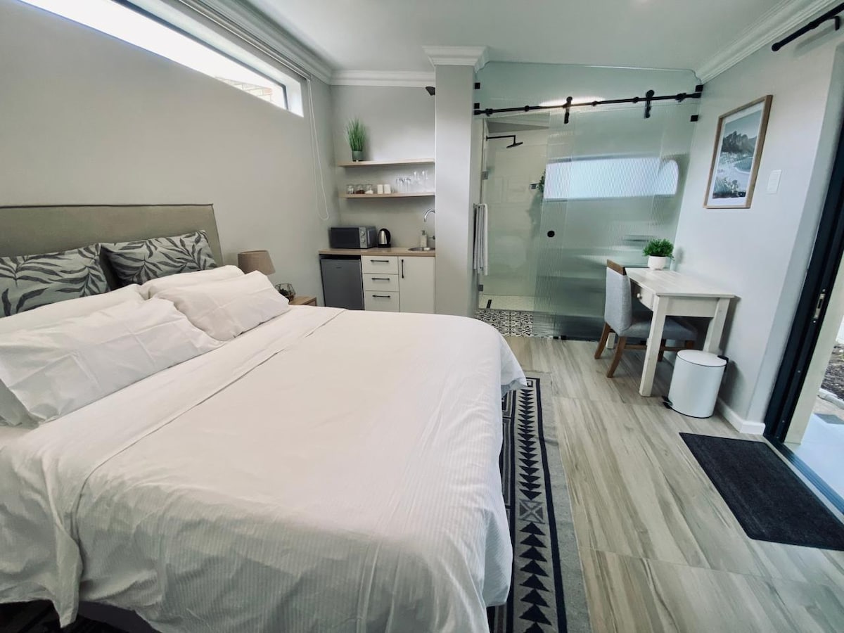 Kick back and relax in this calm, private and stylish space. Unit 1 is a newly built luxury cottage suitable for 2 adults and 2 kids. This modern one bedroom is fitted with a double bed and on-suite bathroom with a shower. There is a fully equipped kitchen and a living area with a sofa bed. Centrally located to all shopping malls and close to the highway with easy access to all places of interest surrounding Port Elizabeth. Families, Gen Z, business all welcome.