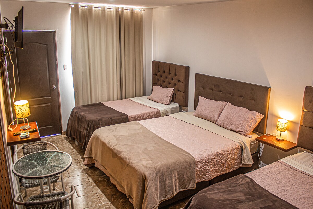 A cozy hotel to stay with breakfast included (NOT APPLICABLE on weekends or holidays) and 24-hour reception. Our quadruple room has a private bathroom outside the room. We are located in the best area of Ica, within walking distance of the best shopping centers, restaurants, and casinos, just 8 minutes from the Huacachina Oasis and 1 block from the regional museum of Ica.