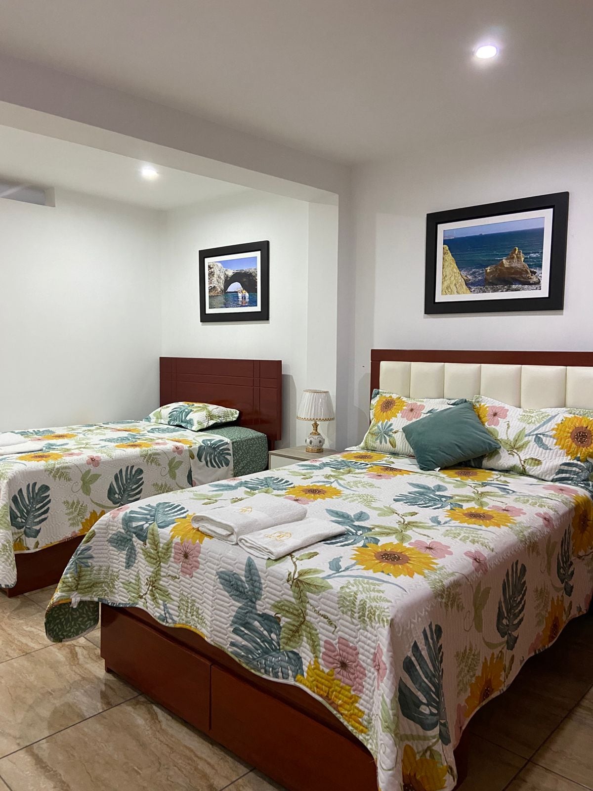 Cozy room with an independent entrance in Nazca, perfect for couples, small groups, and small families. Located on the first floor, this modern space features a double bed, a single bed, a full bathroom with hot water, a small living area, bar fridge, a standing fan, and Wifi. It includes cable TV, access to shared kitchen & laundry facilities; spacious parking. Situated in a safe area, just a 15-minute walk from the main square. An ideal choice for a comfortable and relaxing stay in the city.