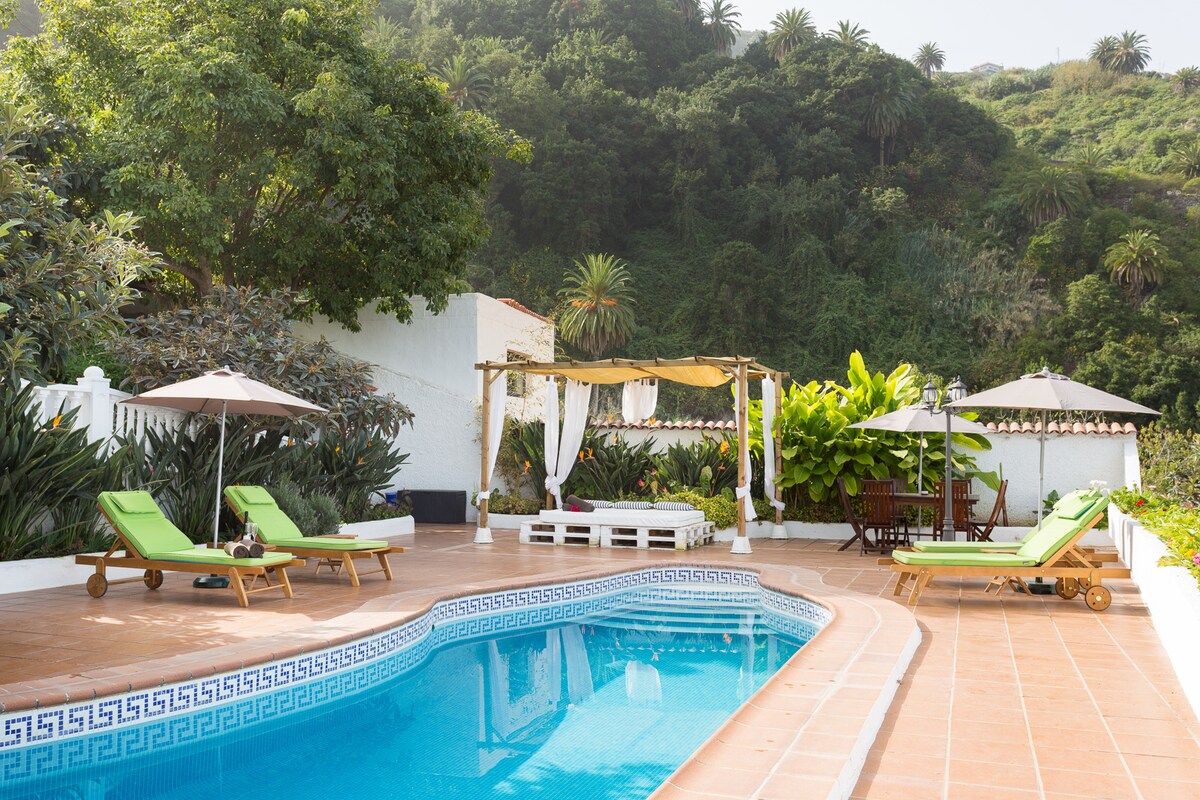 Casa el Mirlo is situated in Finca el Bebedero in Icod de los Vinos, sharing an spectacular private property with heated swimmingpool, barbacue area, gardens full of monarch butterflies, eco farm, table tennis, library and good energy in front of a RainForest called La Furnia, next to the protected landscape called Acantilados de la Culata.