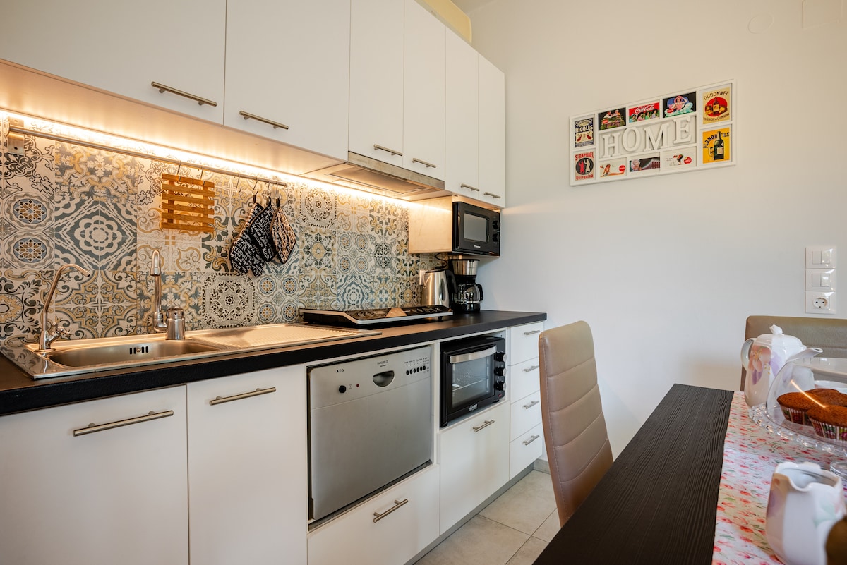 We welcome you to Endless Blue, our brand new 100m2 apartment suitable to comfortably accommodate up to five people. It consists of two large bedrooms, each with a king-size bed, a fully equipped kitchen finished to very high standards, and a spacious living room with an astonishing view to the sea. The Mediterranean Sea can almost be touched from our 80m2 balcony where you can enjoy the Cretan sun on the sunbeds or your meals under the pergola.