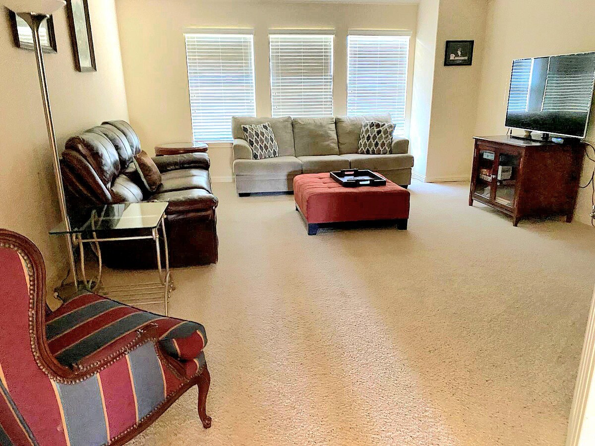 Newly renovated home in quiet cul-de-sac 19 minutes from downtown. Each bedroom has a bathroom and walk in closet. Master bedroom has a California King and second bedroom has a Queen. Both bedrooms are on the second floor. We have a roll in bed in the garage as well as a large couch that can be used for the 5th and 6th guest. Only guests are permitted. No extra visitors, parties or events. Violations may result in cancellation without refund. Neighborhood quiet hours are 10pm to 8am.