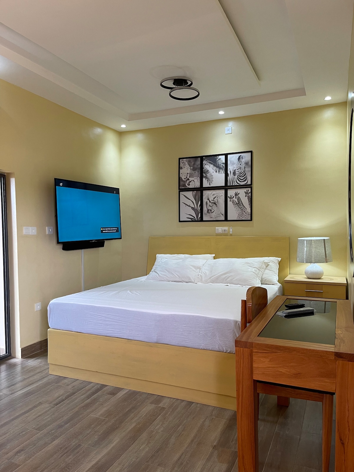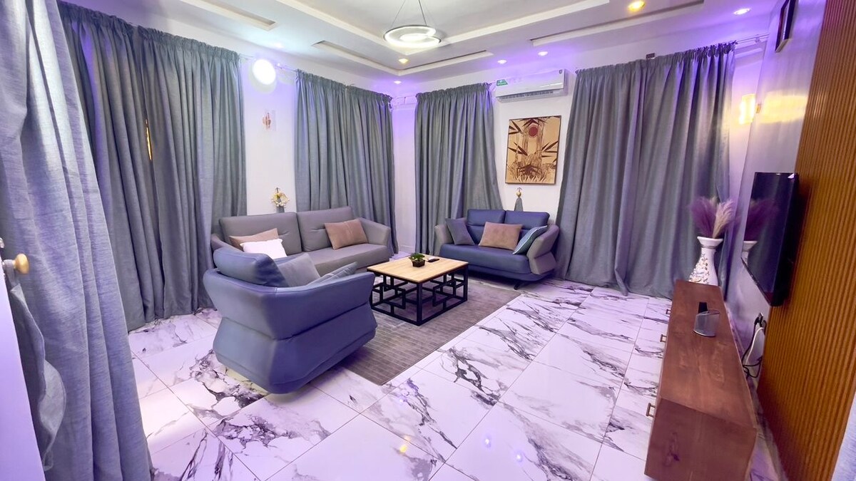 Relax in our 3-bedroom, 3-bath home on Awah Close, Badagry. Enjoy Smart TVs in every room, a fully equipped kitchen, balcony views, and solar power. Unwind under coconut trees, play indoor basketball, or lounge on the benches. With ample parking and 24/7 security, this peaceful stay blends comfort, fun, and local charm — perfect for families, friends, or business travelers.