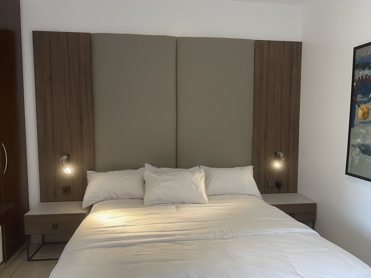 This charming and upscale space is the perfect place to stay for the discerning business or tourist traveler. Located on a quiet street, Micasa Haven offers a 24-hour Chef, Laundry Services, Bar, Private and Open Lounges. The room is equipped with a King Size bed that sleeps two and a well equipped private bathroom. Other amenities in the room include TV, air condition, private workspace and a wardrobe.