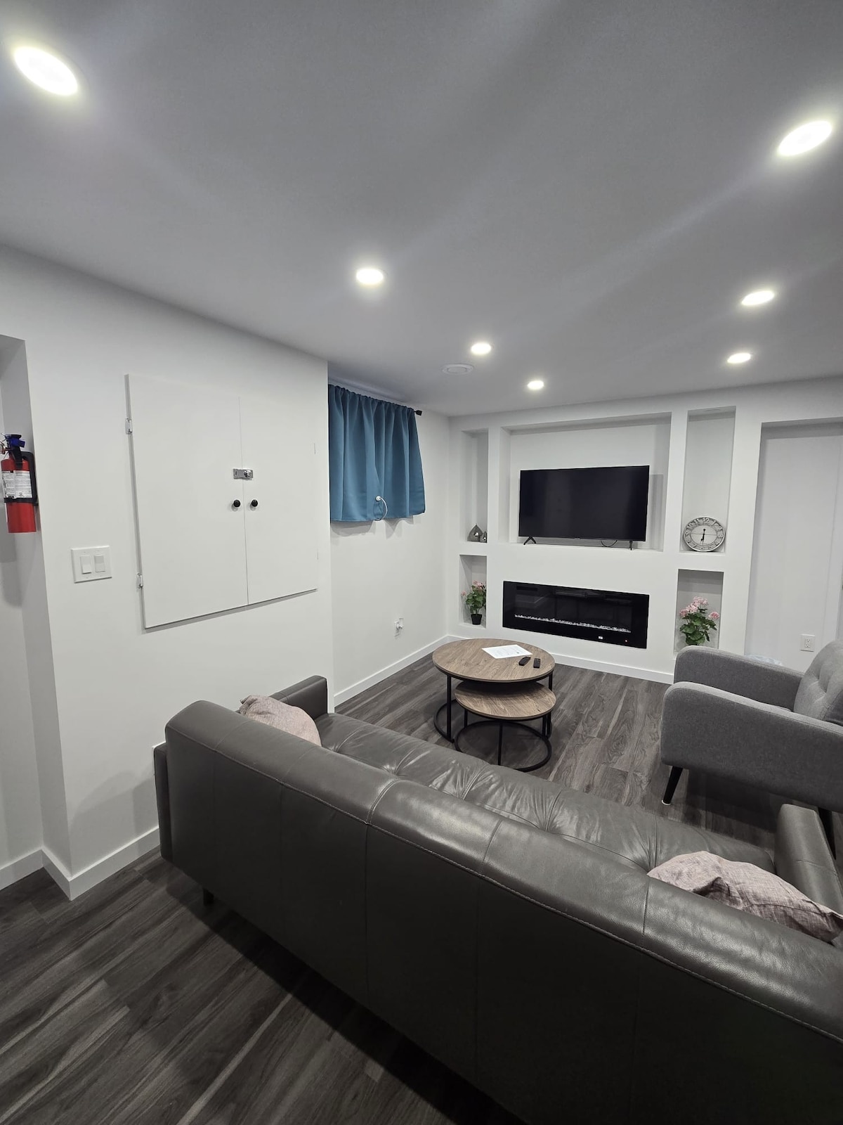 ✨ Modern, cozy basement suite perfect for solo travelers or couples or friends 🛏️ 1 Queen bedroom 🛋️ Relaxing living room 🍳 Kitchenette and dining area 🛁 Full private bathroom 🧺 In-suite full laundry 🔐 Individualized keyless entry with touchscreen keypad Enjoy a clean, quiet, private space with everything needed for a comfortable stay and easy access.