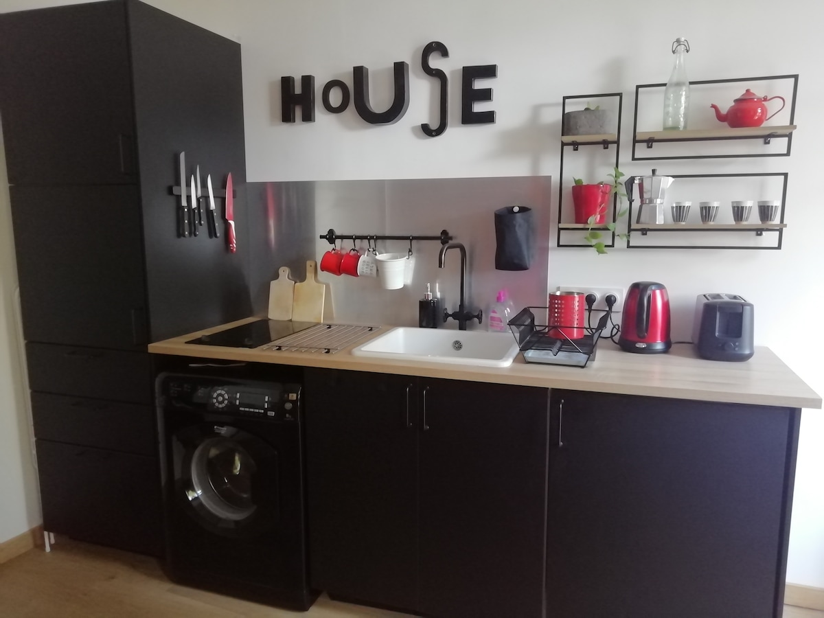 Excellent location very close to downtown (15 min walk by tree-lined path or tram). Pleasant and commercial area, 100 m from the walks along the banks of the Garonne. 48 m² apartment refurbished, well-equipped, functional, modern, in a small, very quiet 2-storey Toulouse house. Beautiful 14 m² room overlooking a 20 m² private courtyard. Ideal for a single person or couple (with child). King size bed 180 x 200 modular in 2 beds of 90 x 200. Free parking in private garage in the basement.