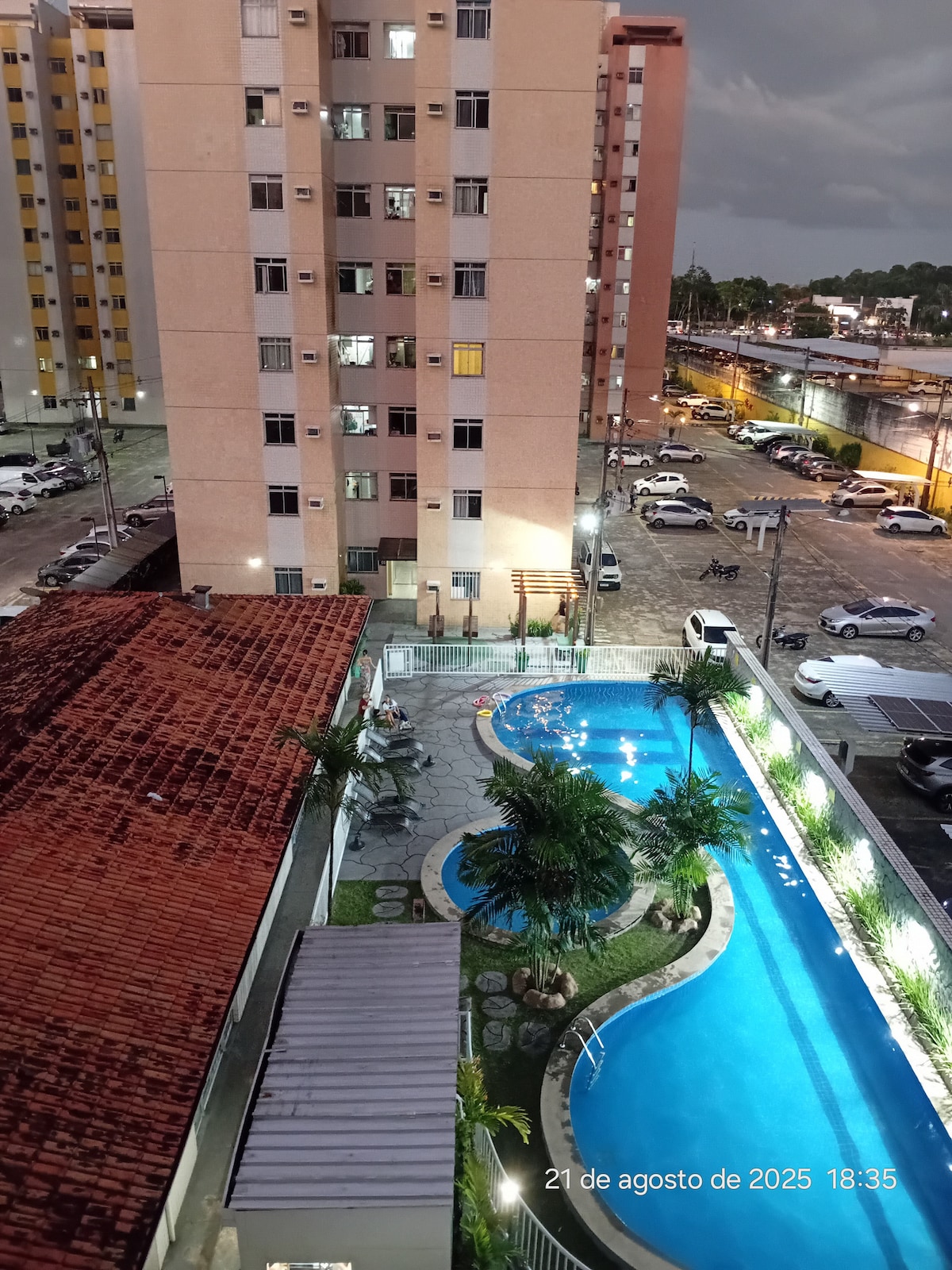 Apartamemto novo, acomodação tranquila, limpo e aconchegante. No primeiro andar, com sacada e elevador, dois quartos sendo um suite, todos com ar condicionado, cama de casal e solteiro, tendo uma cama menor auxiliar , sala com tv e cozinha com utensílios necessários para o preparo das refeições. Estacionamento com vaga reservada, portaria 24 horas. oferece área comum do condomínio como ; piscina, lavanderia, quadra de areia, espaço kids, academia e play ground. ótima localização. Venha conferir
