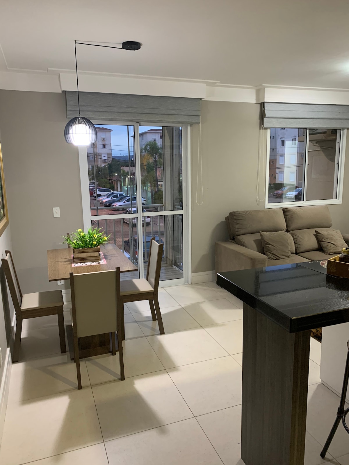 Great apartment, new, furnished, balcony with barbecue, parking space, elevator, in a condominium with complete infrastructure (24-hour security, swimming pool, fitness center, kiosk with barbecue, toy library, game room, pet space). Located next to Salgado Filho Airport and the main accesses to Porto Alegre. Close to green areas and services such as markets, pharmacies, restaurants, transportation lines, soccer stadium (Arena do Grêmio). Cozy, airy and bright space.