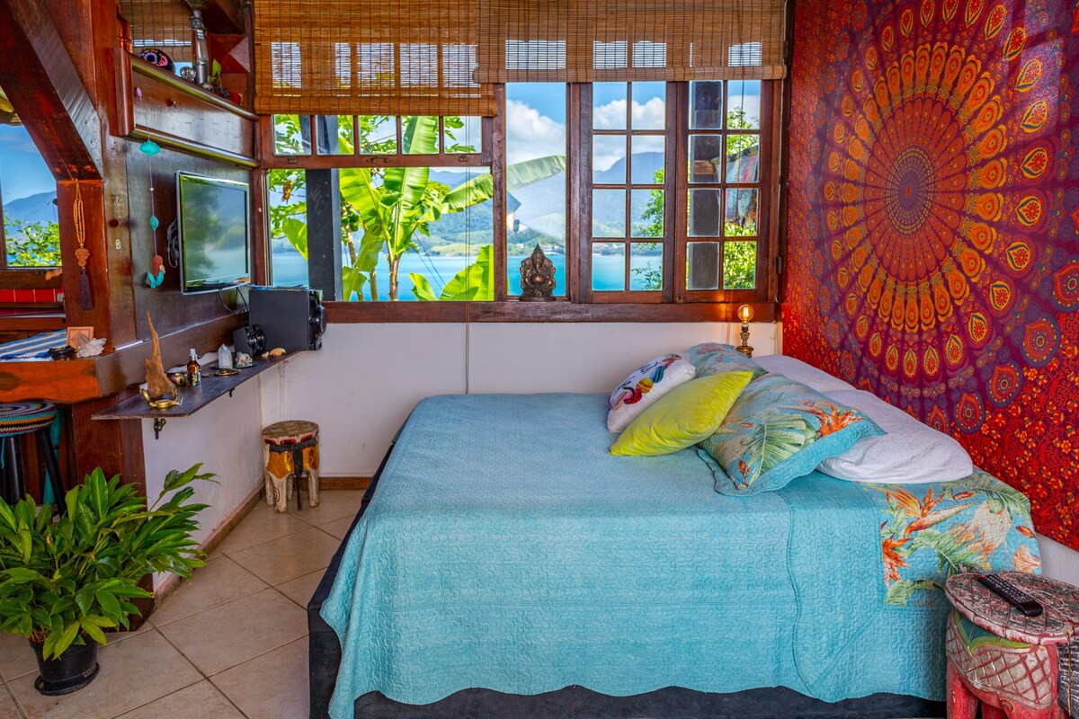 Charming retreat for couples on a small farm in the middle of the Atlantic Forest in Borrifos, on a coastal road in the south of Ilhabela, with spectacular ocean views. Facing the sea, it provides complete integration with nature, an ideal place to contemplate, meditate, observe the birds and the sea.