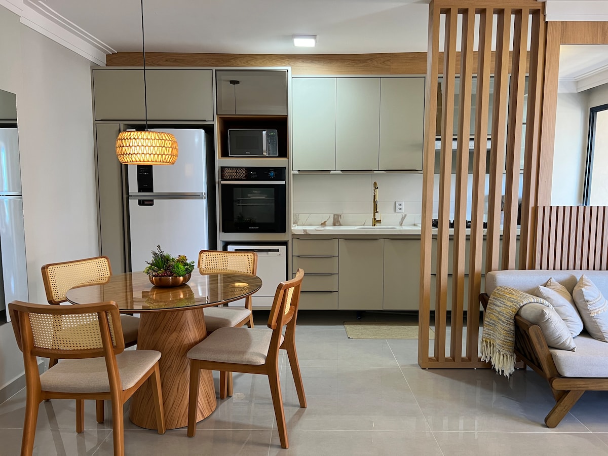 More than a place to sleep, this apartment combines comfort, technology and practicality. It has a large air-conditioned office, minibar, ergonomic chairs and a 34" curved gamer monitor, full-HD webcam and hyperX microphone, ideal for those who want a home office or gamer. It has a 65” TV in the living room, Alexa, bedroom with 50” TV, air conditioning, washer and dryer, air fryer, two bathrooms and a parking space. Condominium with swimming pool, gym and leisure, 800 m from the beach.