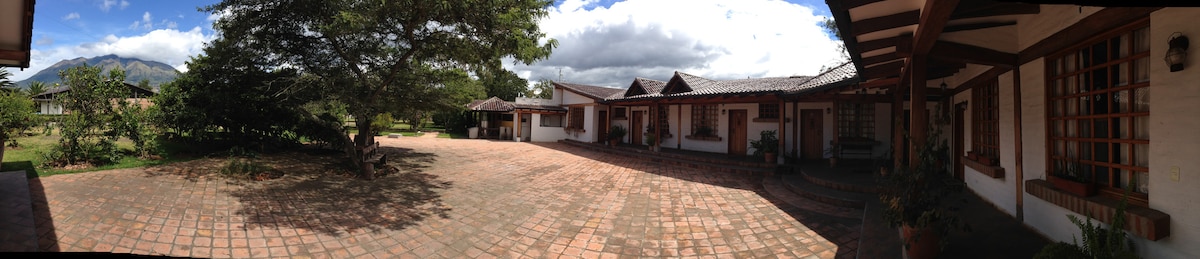 House offers accommodation, in a quiet space away from the noise of the city. You can enjoy beautiful landscapes such as Lake San Pablo and IMBABURA Volcano.