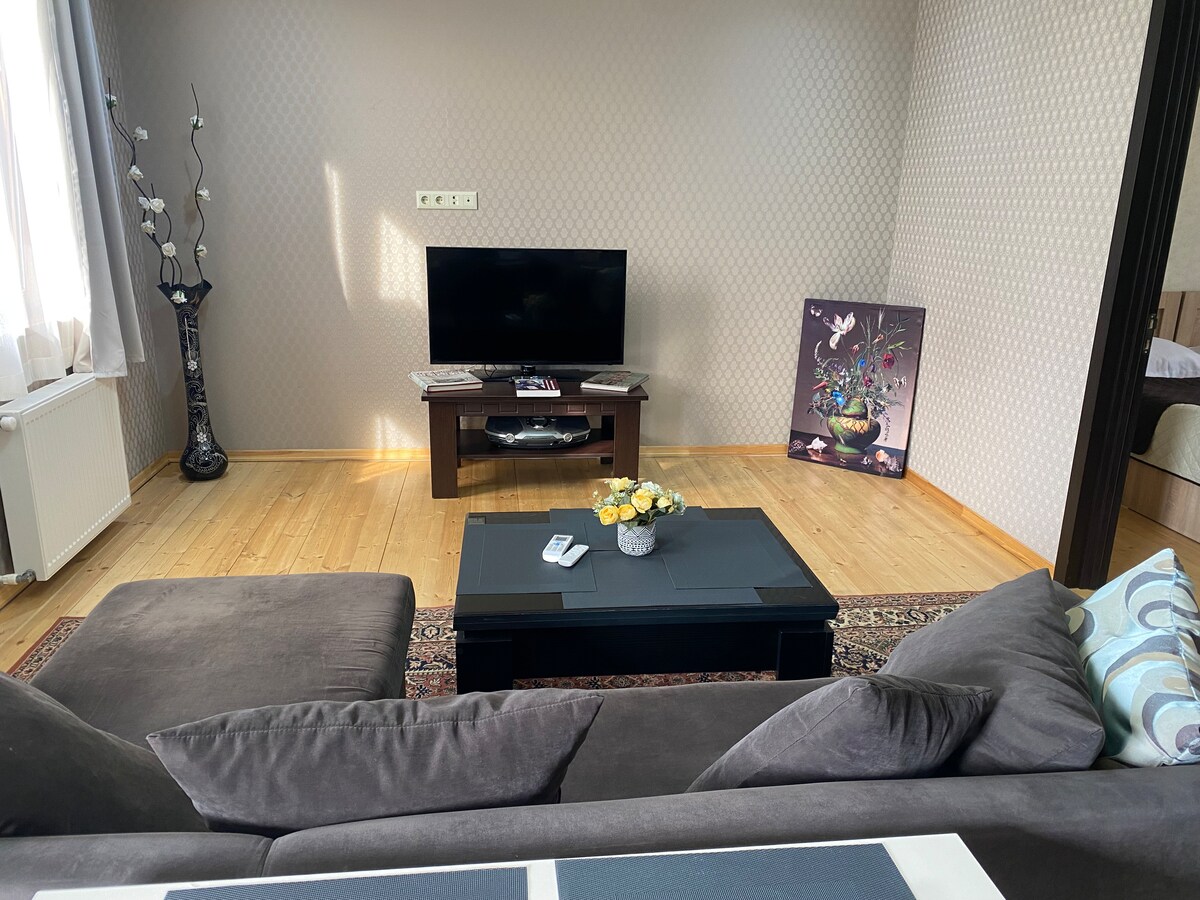 Enjoy a stylish stay in the heart of the city, 450 meters from the Colha Fountain in the city's central square. Here you will feel coziness and silence, luxury, comfort, warmth and convenience. Our apartment is located 100 meters from the house museum of the great Georgian composer, Zakharia Paliashvili.