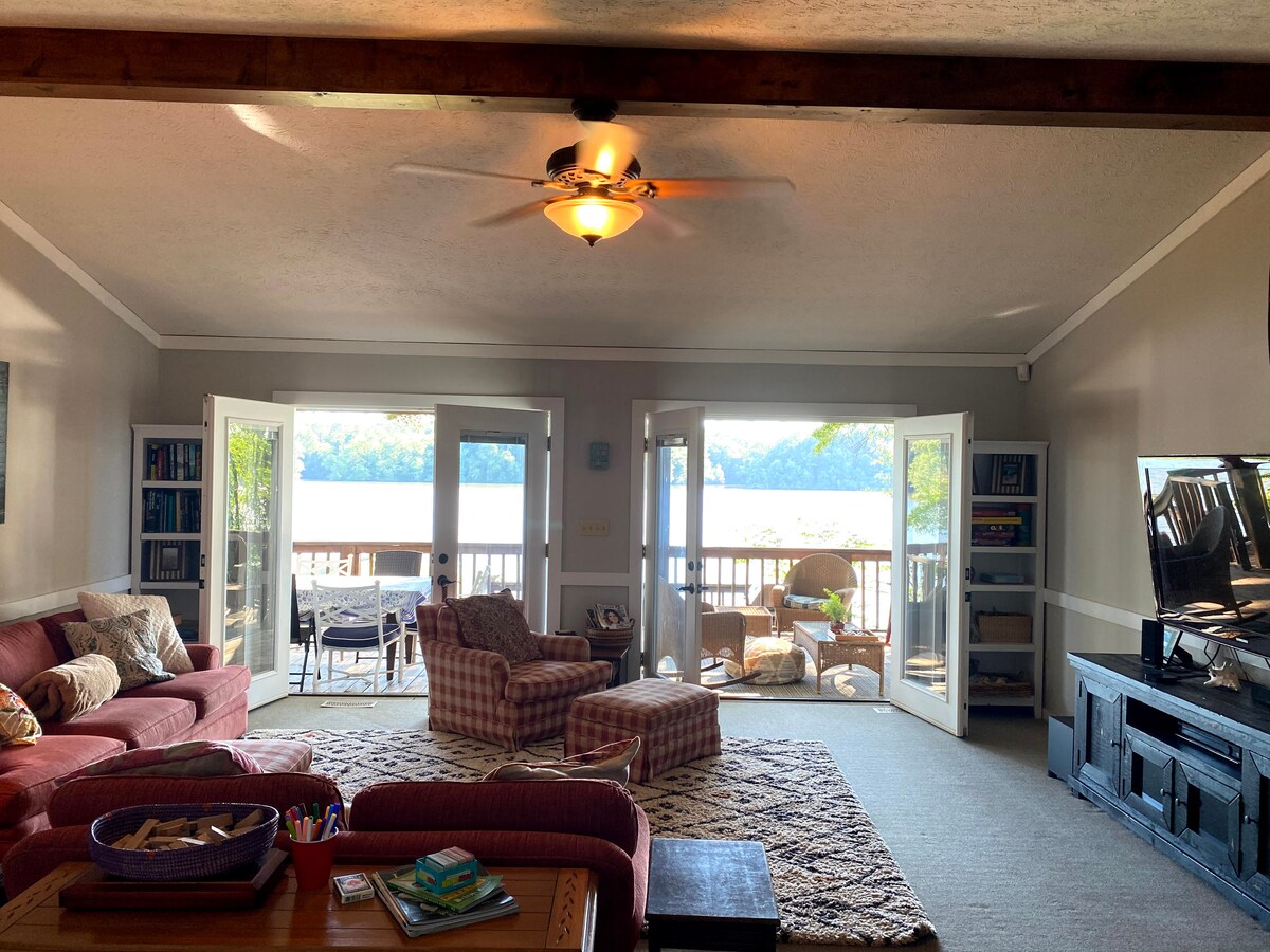 Welcome to our charming lake cottage! Dogs welcome ($75 flat fee), baby amenities available! On Jackson Lake, 1 hr from Atlanta, our cottage with private dock (with kayaks-two adult and one child size) is the perfect spot to unwind. With photo-ready furnishings, white cotton and linen bedding, and subtle antique decor, our cottage exudes a warm vibe that will make you feel right at home. Please, no wild parties or drug use. Our neighbors don't deserve to hear or smell any nonsense. Thank you!
