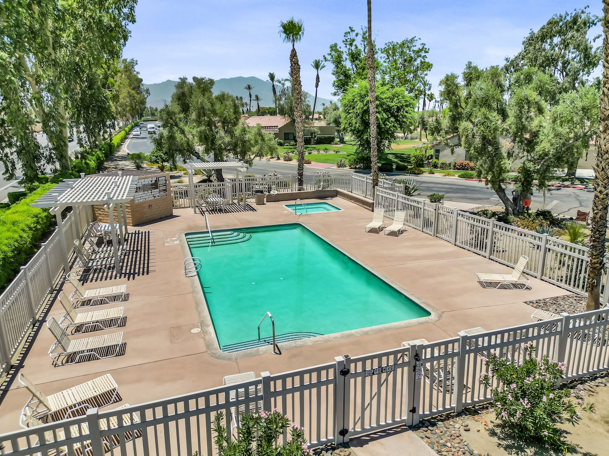 Legacy Villas is the perfect setting for entertaining family and friends and relaxing in the sun or in the 12 salt pools including 2 lap pools and 11 spas. Permit #064622 Legacy Villas is a private gated community with 24x7 security, located two blocks from the La Quinta Resort and close to restaurants, tennis, golf, shopping and casinos. The property is a two bedroom second floor home enjoying unparalleled north and west direct exposures to the Santa Rosa Mountains.