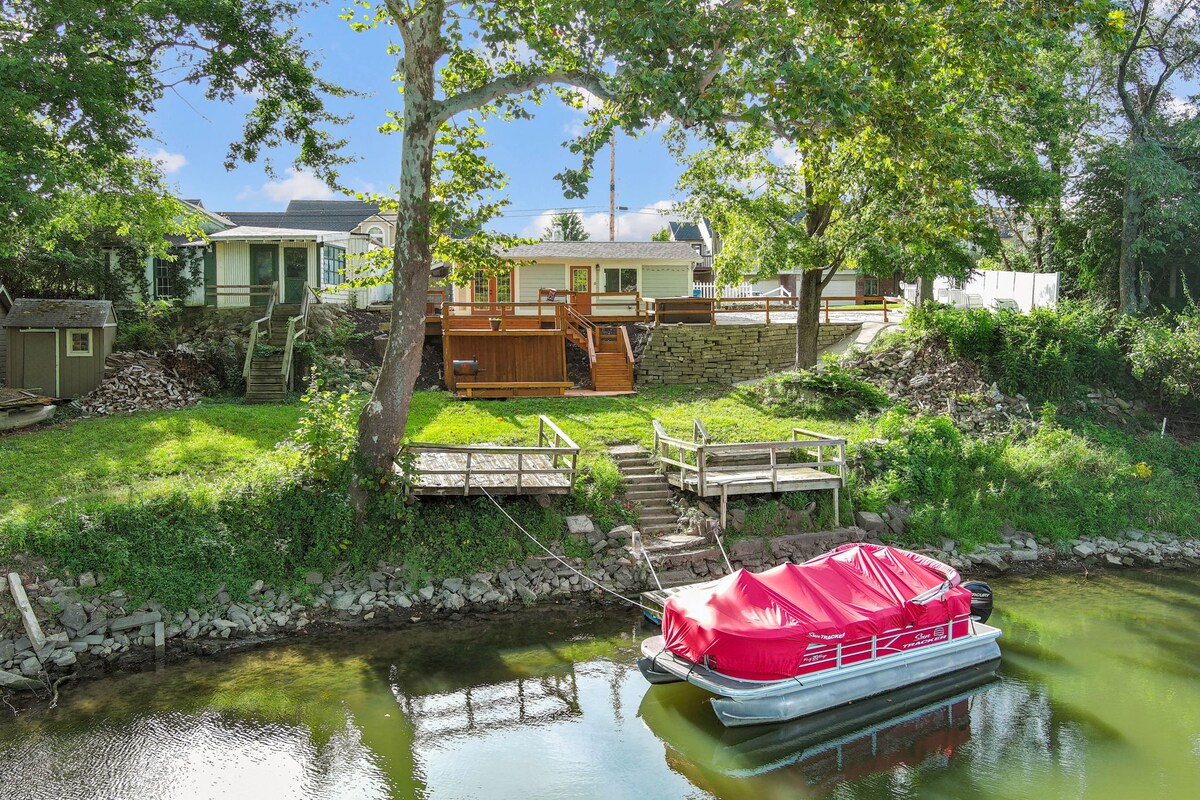 Relax at this peaceful riverfront cabin just minutes from downtown Indianapolis. Enjoy the private hot tub with peaceful water views, and take in the sunset as boats drift by. Inside, you’ll find a cozy, modern space with warm wood interiors—perfect for couples or a girl's weekend. The home sits in a quiet residential area, offering a balance of nature and convenience. Whether you’re here to relax or explore the city, this is your easy, cozy escape close to all the best Indy has to offer.
