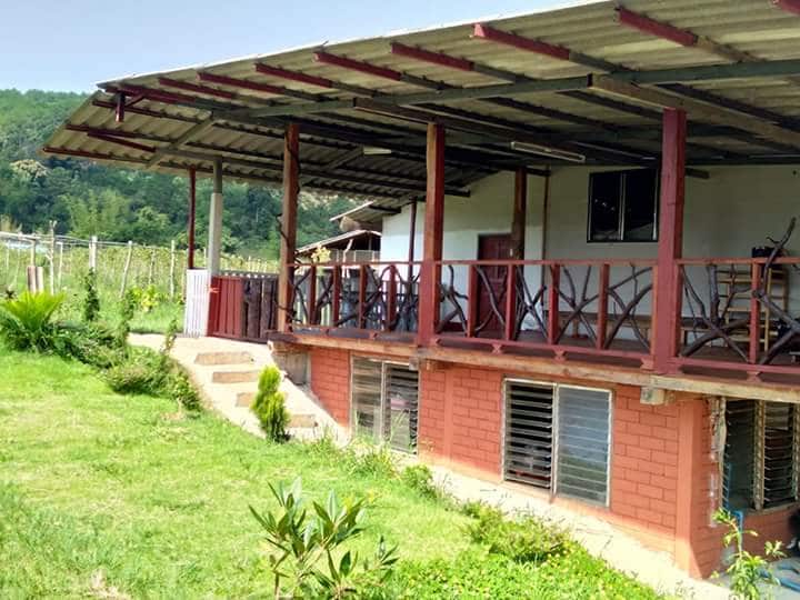 The earth house is perfect for a small family. It has a 6 ft. and 3.5 ft. bed, air conditioning, en-suite bathroom, water heater. Located in the middle of nature, with pets, vegetable and fruit plots free of toxins. You can pick the produce to eat. It is next to the central kitchen for cooking your own food.