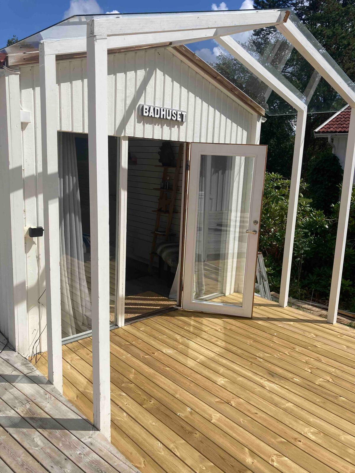 Mitt i naturen men bara 20 min från Göteborg hittar ni denna idyll. Här bor ni bekvämt i en nybyggd gäststuga med kamin, vedeldad bastu och badtunna. Runt hela huset går den stora altanen. Nedanför är en mysig stig (50 m) till den privata bryggan för ett morgondopp. Ta en tur med roddbåten och pröva fiskelyckan eller låna våra två SUPar. I direkt närhet finns vildmarken med gott om stigar, bl.a. Vildmarksleden, för vandring, löpning och mountainbike. Flygplats: 8 min Chalmers golfbana: 5 min