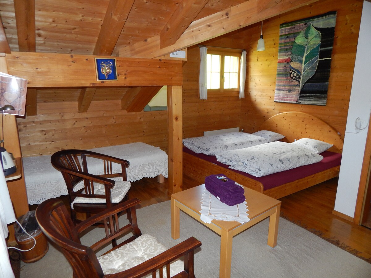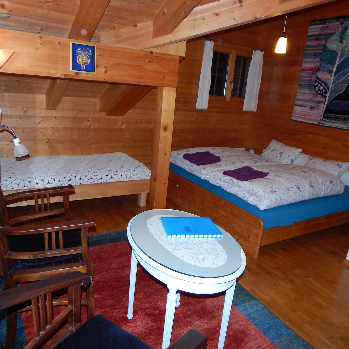 Stilvolles Bed&Breakfast mit 3 DZ und 1 Kinderzi , alle mit Kabel-TV und WiFi, 2 Duschen/WC, Aufenthaltsraum mit Cheminé, Kaffeemaschine, Teekocher, Kühlschrank. Aussensitzplatz. Gratis Parkplatz. Auf Wunsch Frühstück mit regionalen Produkten. Ideal für Wandern, Biken, Skifahren, Berge, Seen.