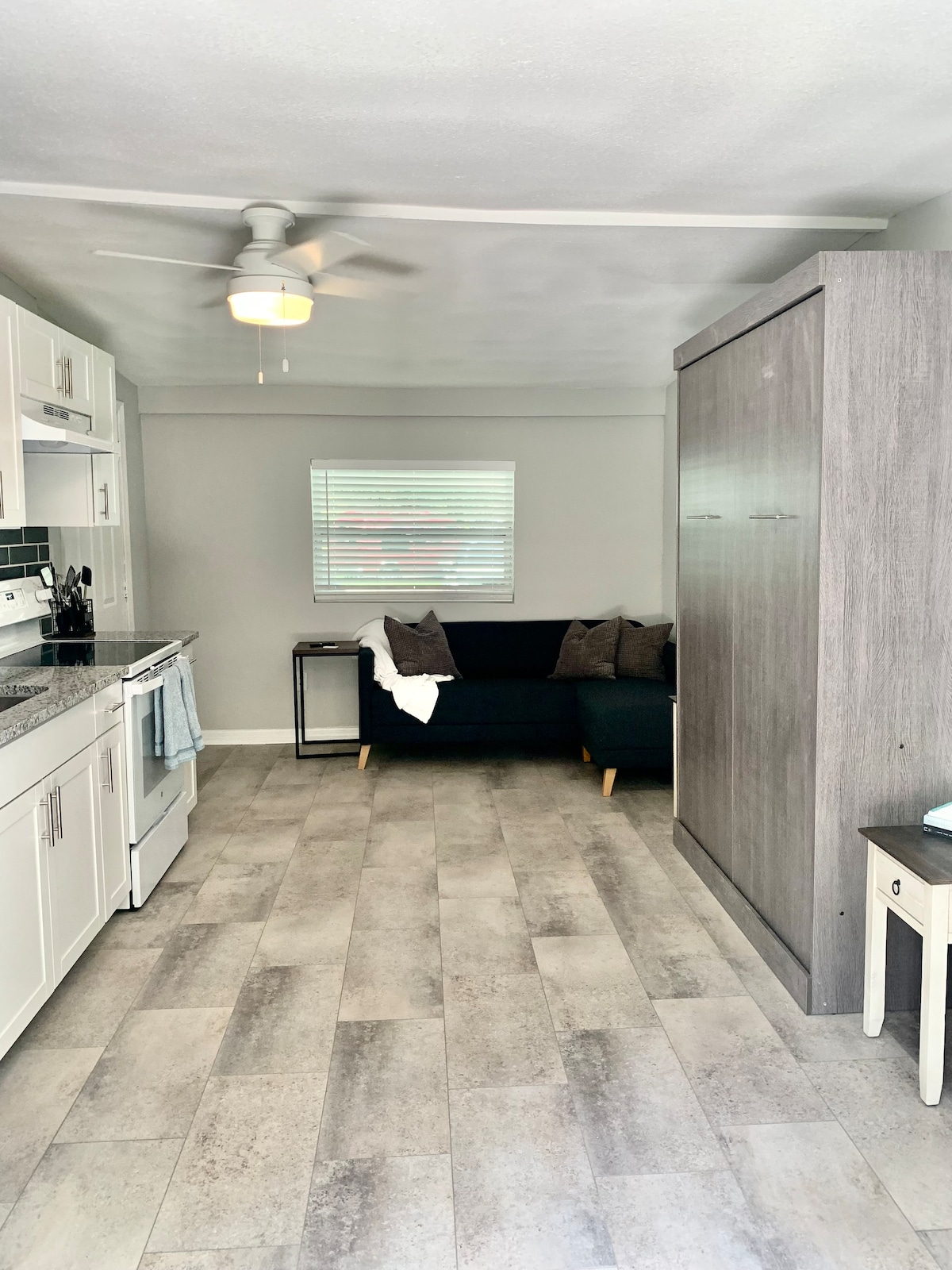 Family-Friendly Comfort - Close to Beach, Downtown & Everything Fun! . * WiFi. **Rooms feature:** - Queen bed - TVs & dedicated workspace -Couch and dining **Full amenities:** - Kitchenette (stove, microwave, fridge, coffee maker, sink, tools, toaster) - Outdoor bench Ideal for work, fun, or extended stays – everything for a seamless visit! * Everything's ready-you just bring each other.