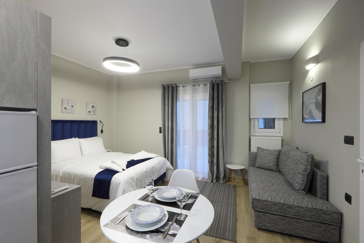 Two-room studio 30sqm fully furnished. Ideal for a pleasant stay. It is not in the city center. It is about 3 km from the center in a quiet area of Ampelokipi. It's bright. It's 300 meters from the General Hospital of Hatzikostas. It's ideal for patient escorts who need hospitalization. There's a lockbox.