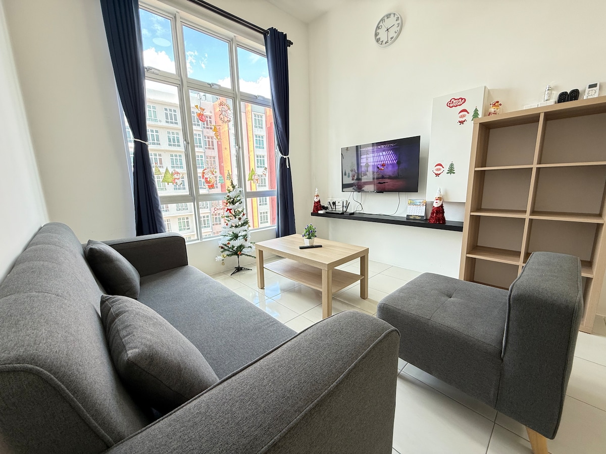 A_Door Guest House is a corner unit with 3 bedrooms & 2 bathrooms with a cozy artificial grass at the balcony where you can enjoy the night view of the city. This is a modern stylish designed home that is ideal for business savvy executives or active modern families. *with aircond * we have Unifi Broadband and TV Box for you The space ✦Bedroom 1 - with bathroom 1 Queen bed + 1 super single bed ✦Bedroom 2 1 Queen bed + 1 super single bed ✦Bedroom 3- 1 sofa bed ✦1 shared bathroom