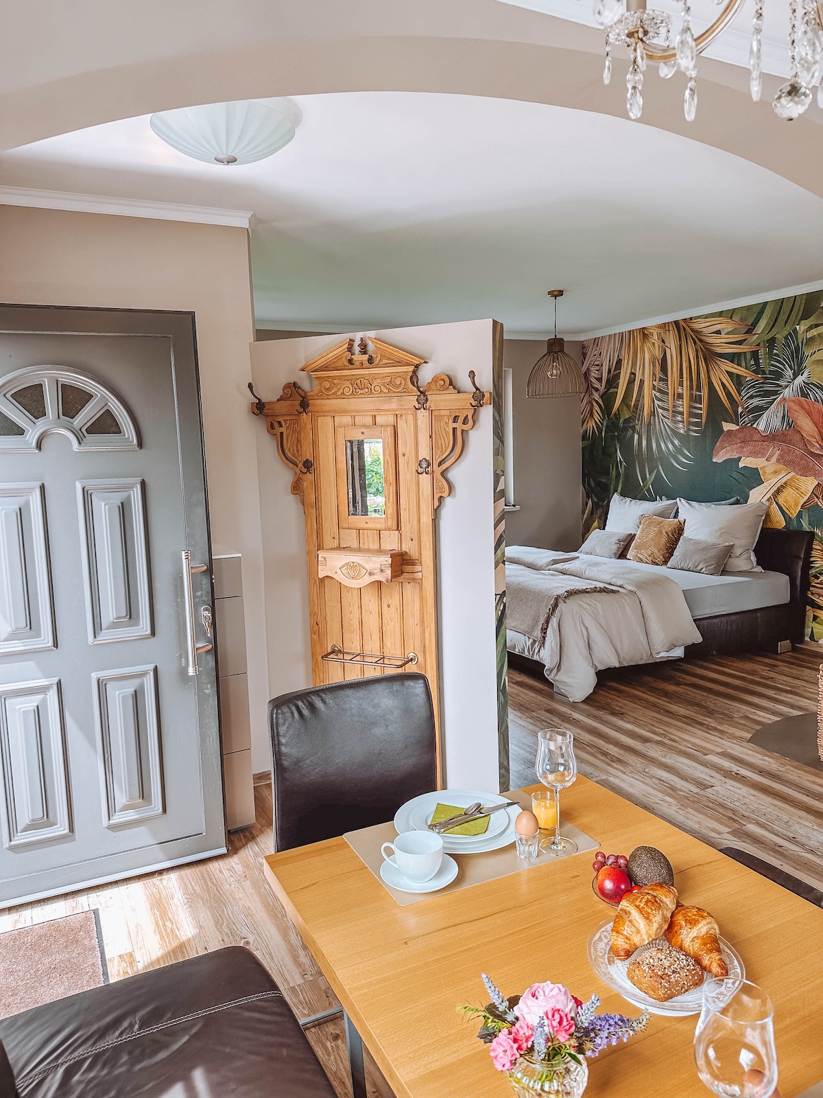 The 500-year-old house was completely renovated in 2021. Enjoy a relaxing evening on the sofa under an elaborately restored stucco ceiling from the Baroque period, take a look at the historical details that can be found throughout the apartment and feel completely at home in the lovingly furnished apartment. Two bedrooms with double bed and separate bathroom, well-equipped kitchen and only 2 minutes' walk from the river bank with swimming bay.