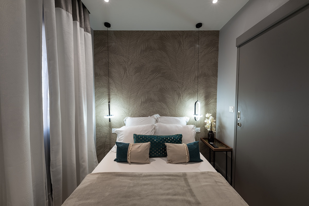 Discover the Ciné loft, an urban two-room apartment ideal for movie lovers. Equipped with a video projector and an automatic screen, it transforms your living room into a private movie theater. Enjoy an elegant interior with all modern comforts, a fully equipped kitchen, and a cozy bedroom. Perfect for combining relaxation and entertainment. Book your unique cinematic experience at the Ciné loft!