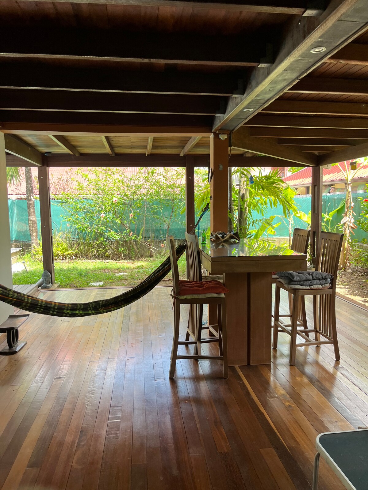 Découvrez notre carbet, niché à 1 kilomètre du fleuve Kourou, sur la paisible route de Dégrad Saramaca. Un cocon de bois en pleine nature, tout près de la montagne des singes. Endormez-vous au rythme de la symphonie tropicale des oiseaux et des grenouilles, respirez l’air pur, et laissez le calme vous envelopper. Ici, pas de réseau mobile mais du Wi-Fi… même les explorateurs ont besoin de recharger une série ou de poster un selfie “déconnecté”. Le calme d’un autre monde.