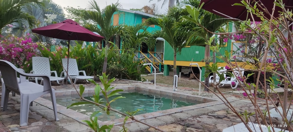 3 beautiful cabins, located in the mountains of the Casa Baja sector, where most of the Raizal ethnic community lives, 10 minutes from Manzanillo beach. With supermarkets 200 meters away, churches 300 meters away, and a bank 4 kilometers away. An unparalleled place created to rest, read, sleep, and disconnect from everyday life surrounded by nature. During your stay we solve all your travel needs, the owners attend to the guests directly.
