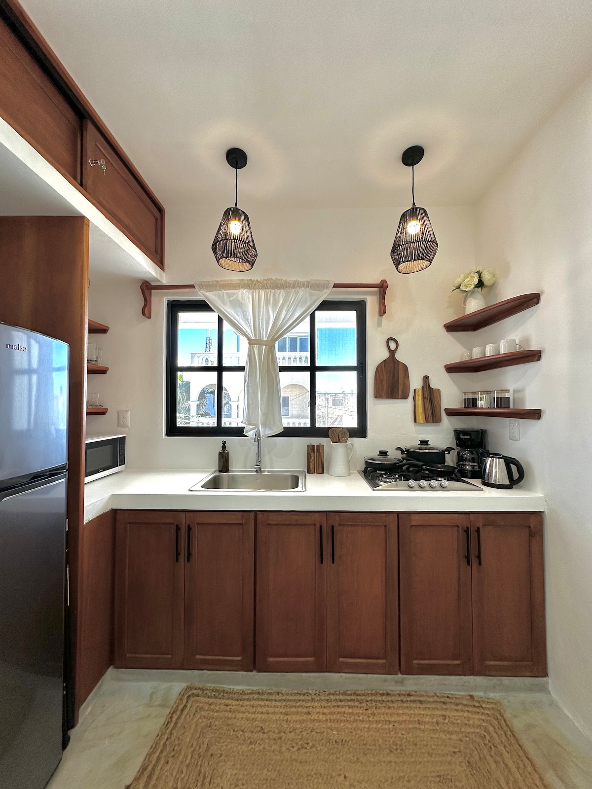Relájate en este espacio tranquilo y elegante. El estudio Antonieta es un cómodo espacio que cuenta con los elementos esenciales para hacer de tus vacaciones un momento inolvidable. Se encuentra en un área a mitad de la isla lejos del ruido y barullo de la zona comercial pero cerca del principal atractivo de la isla: su hermoso mar Caribe. Disfruta de hermosos atardeceres en la piscina de su fabuloso rooftop y relájate viendo el azul del mar Caribe y de su cielo desde sus amplias ventanas.