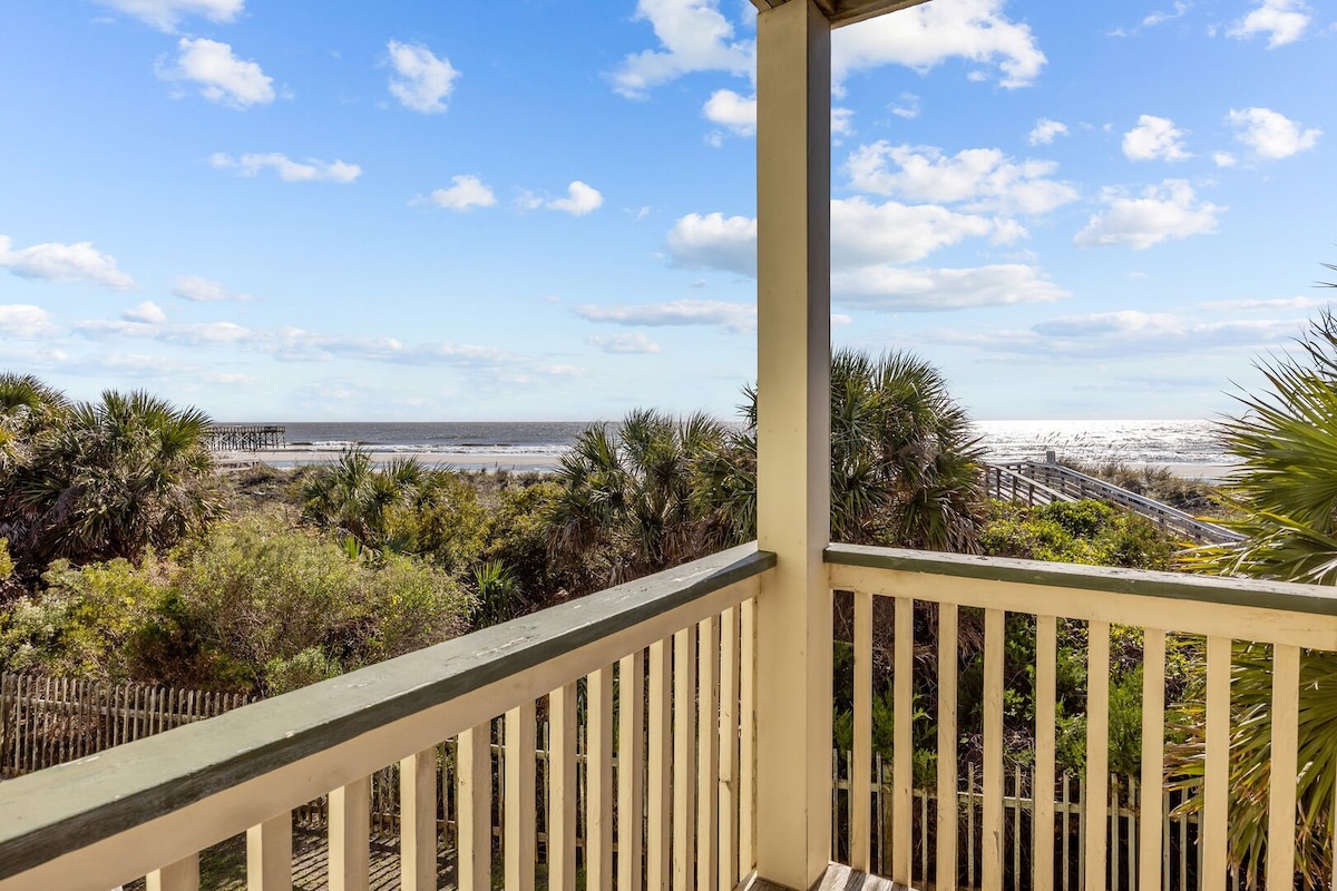 Make your next vacation unforgettable with a stay in our charming beachfront condo with privates beach access, a pool, and the only pier in town! Enjoy watching the sunrise from the balcony or take a stroll along the beach to feel the sand between your toes. After a long day of sunbathing, your fully equipped kitchen and comfortable living room provide the perfect setting for enjoying a family meal or game night. Don't feel like cooking? The shops and restaurants of IOP are steps away!
