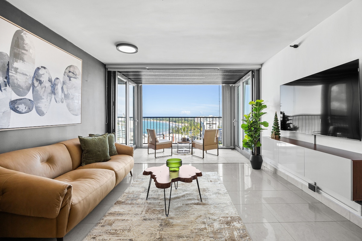 Enjoy million-dollar ocean views from this 14th-floor One Bedroom, just 5 minutes from SJU Airport ✈️ and steps from the beach 🏝️. Fully equipped for your stay with a king bed, pull-out sofa, and kitchen 👩🍳. Self check-in anytime after 3 PM, one free parking 🅿️ spot, and access to paid laundry 🧺 machines. Free luggage storage 🧳 before check-in/after check-out. A 24/7 supermarket is 5 minutes away. **NOTE: Pool is closed** Book your Puerto Rico 🇵🇷 escape today! ☺️