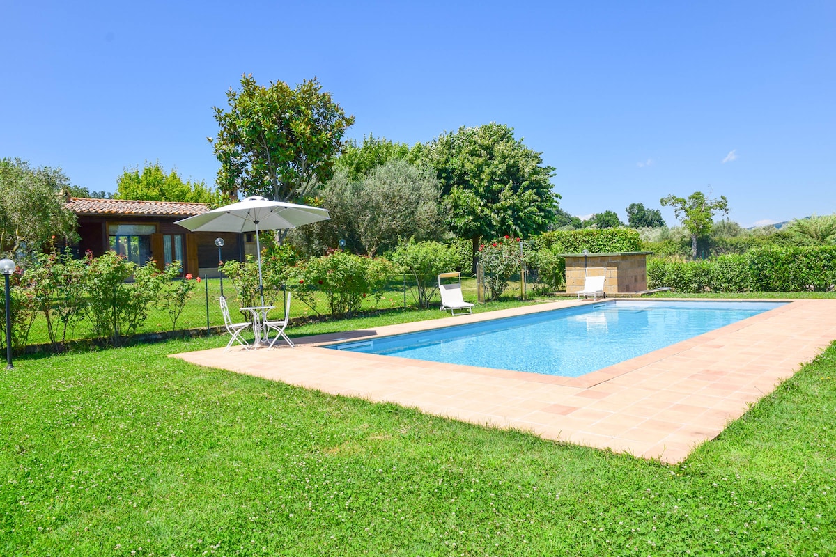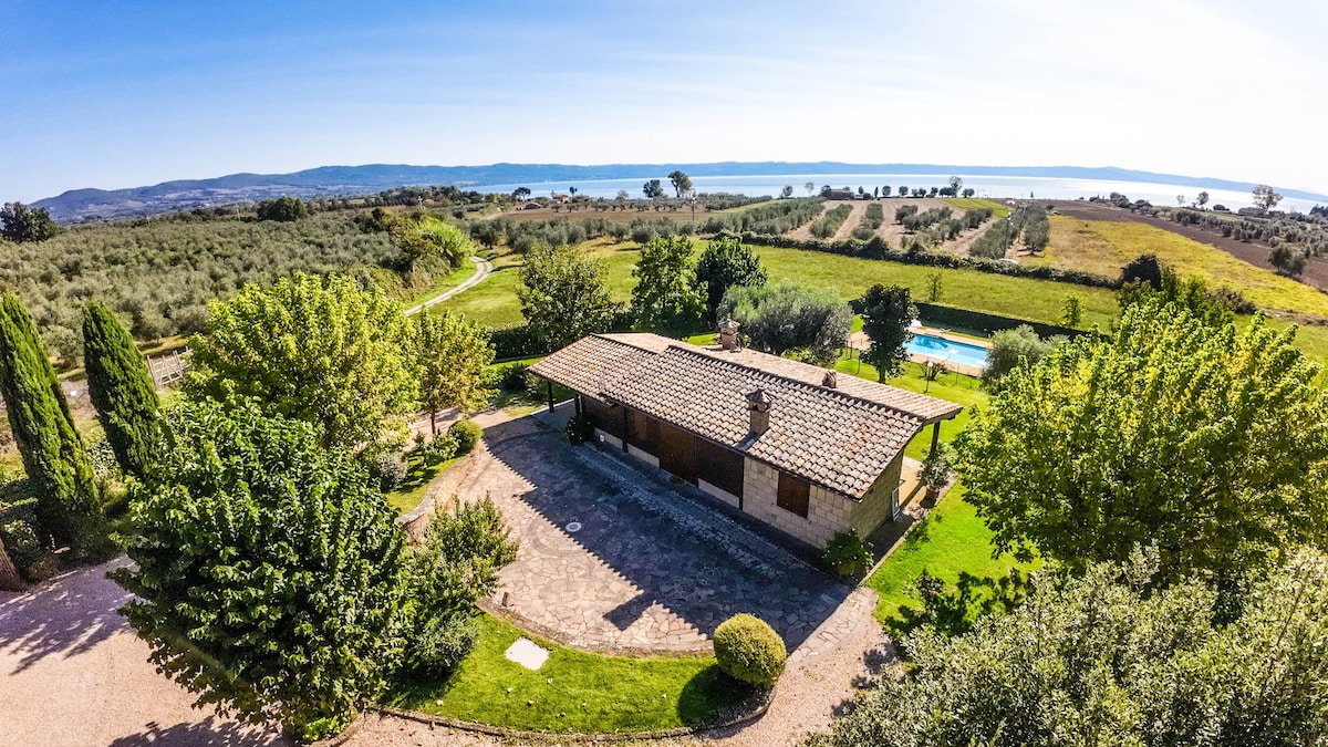 The renovated tuff cottage, surrounded by greenery, is located at the crossroads between Umbria, Lazio and Tuscany, a few minutes from Lake Bolsena and about an hour from the sea. Just over half an hour's drive away are the most famous spas in Italy, such as Saturnia, Bagno Vignoni, Bagni San Filippo, Sorano and the Terme dei Papi in Viterbo, ideal even in the middle of winter. For cultural tourism and relaxation.