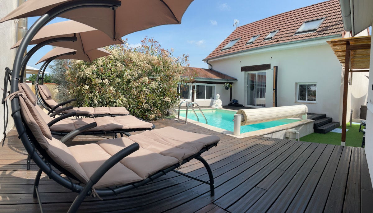 Come and recharge your batteries with family, friends or for small seminars in this house from the 2010s. The main room of the house is 80 m² (Kitchen/Living room/Billiards). The house has 5 bedrooms upstairs, each with a 160 x 200 bed and a 90 x 200 bed. Two are equipped with a shower room. The terrace is equipped for 15 people, there are 2 gas grills. The heated pool (27°) is open all year round, covered from October to May (these dates may vary depending on the weather).