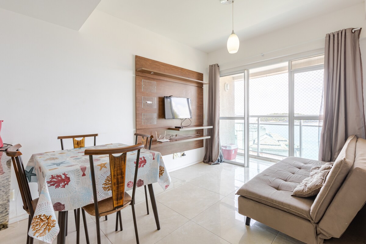 Comfortable 2-bedroom apartment in the best resort in Mangaratiba. Complete infrastructure for family, friends and children. We have 2 en-suites, 1 social bathroom, 1 living room, 1 full kitchen and a balcony overlooking the sea. All rooms have air conditioning and cabinets. Bed and bath linens included in the accommodation. You can accommodate 2 more children in the living room with a mattress and/or sofa bed if necessary, or 1 adult, in addition to the 4 guests, at an additional cost (check with the host).
