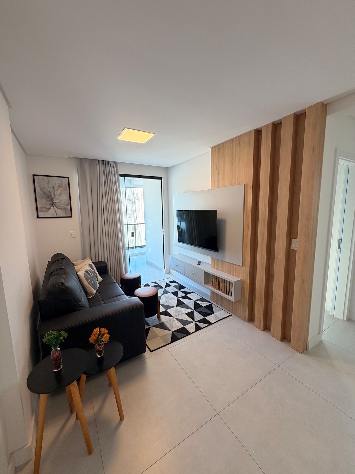 Apartment 3 min from the beach, super new with complete furniture. It has all utensils, including towels and duvet of very high standard. A queen double bed plus a sofa bed that holds 2 more adults and one more child (ideal for family) What makes up ~ Gym ~ Hot Water ~ Elevador Service (1) ~ Social Elevador (3) ~ Gourmet Space ~ Central Gas Furnished Entrance hallway ~ Adult Swimming Pool ~ HEATED POOL ~ Playground ~ Electronic Gate ~ Arcade Room
