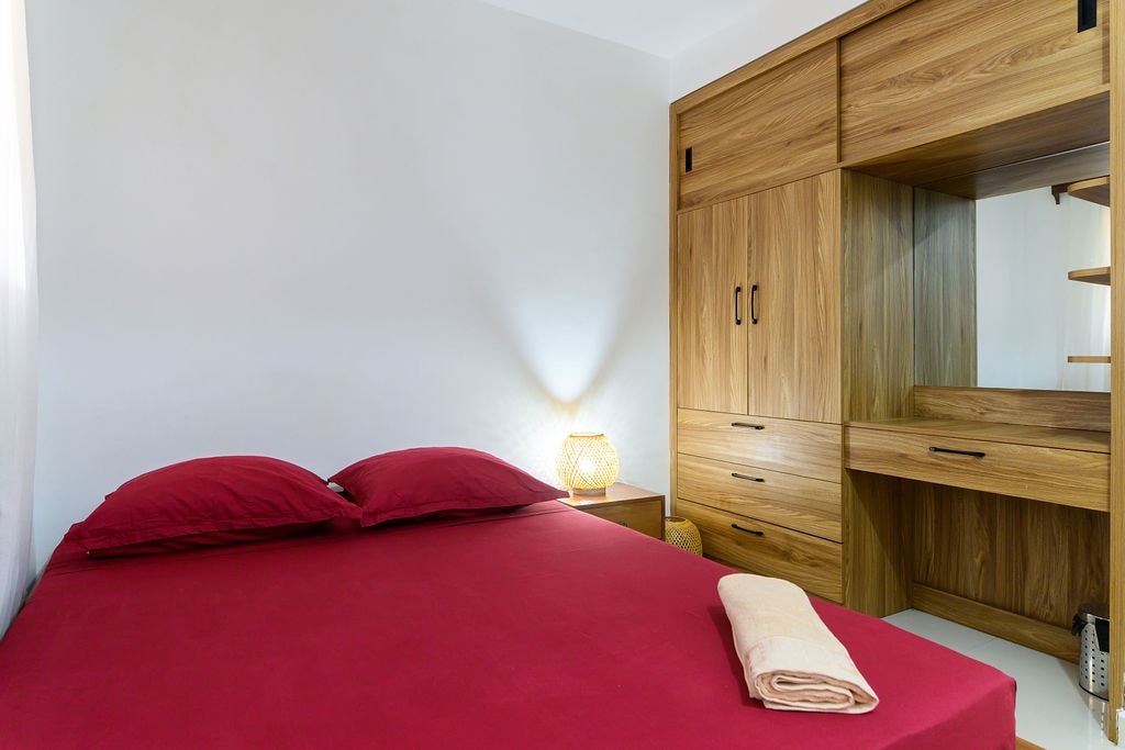 Modern and bright studio with private terrace/balcony overlooking a tropical garden. Unlimited high-speed internet, 24/7 water and electricity, Smart TV with IPTV channels. Full kitchen equipped with fridge-freezer, microwave, coffee maker, kettle, gas and utensils. Close to airport, supermarket within walking distance and local market. Quiet, secure, ideal for long stays. Perfect for working, relaxing and enjoying a comfortable and convenient stay close to essential amenities