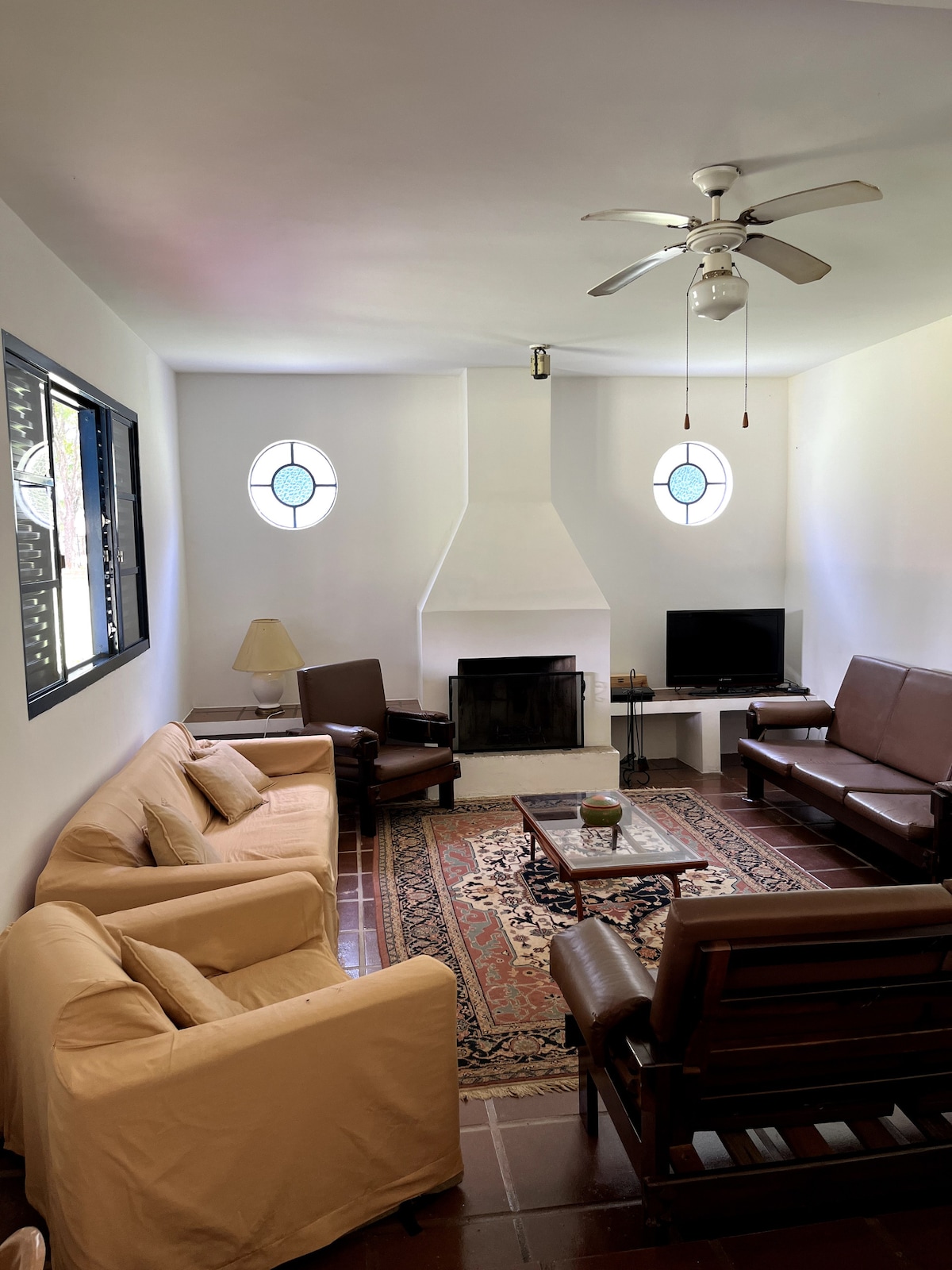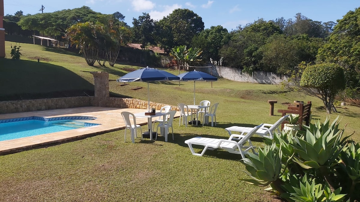 Farm located 90 km from the capital of São Paulo, ideal for hosting families. We don't book for parties. There are 2 bedrooms (1 double bed, 2 single beds and 1 extra mattress in each bedroom) with air conditioning, COLD only. Spacious and comfortable living room. Kitchen with stove, refrigerator, microwave and household utensils. Barbecue, freezer. Pool is NOT HEATED and is 2.60 m X 12.00 m. Game room with billiards, foosball and card games. Fire pit area with a wonderful view!