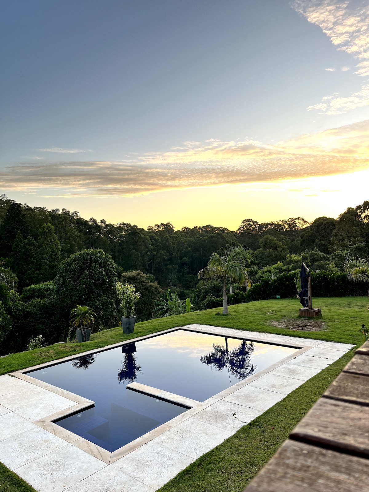 Adorable familial chácara, located only 1 hour from São Paulo, where my grandparents lived for many years. With 3,000m² of land in a gated community, it offers the perfect getaway for you and your family. Ample green area with private pool and barbecue area, old but very comfortable house. 3 bedrooms – a suite and two bedrooms with double beds and bicamas, all with access to a balcony overlooking the pool, plus one more bedroom and bathroom with views of the orchard.