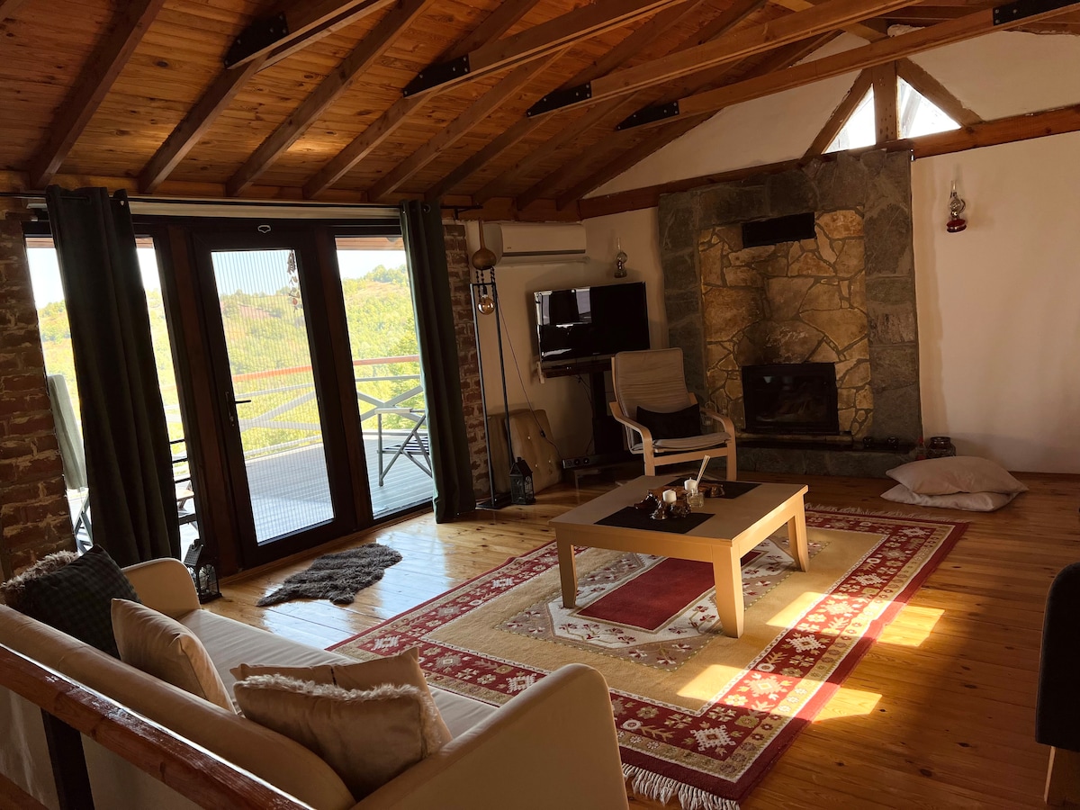 Our house consists of two villas side by side; it has two floors, an open kitchen, living area, kitchenette, toilet/bathroom and veranda (the veranda can also be used as a winter garden) on the lower floor, and a terrace, large living room with fireplace and two bedrooms on the upper floor. All operators are available. We would love to welcome you in a peaceful environment with your family or friends, where you can walk in the enchanting atmosphere of nature, barbecue on your own 5-acre land.