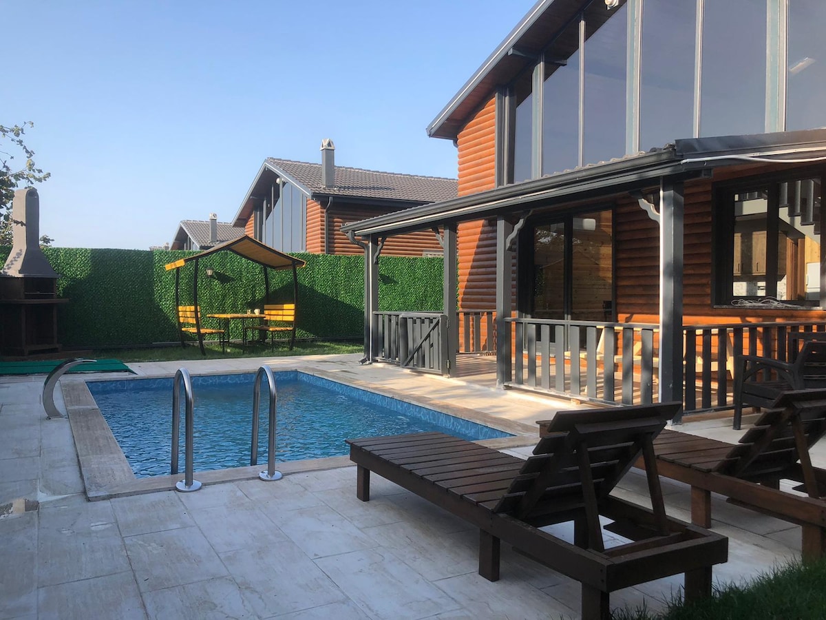 Our tiny house, just 100 km from Istanbul, offers a comfortable escape in nature. Everything is ready for you with CLEAN AIR, a SHELTERED PRIVATE SWIMMING POOL, Wi-Fi, heating with a FIREPLACE, TV, fully equipped kitchen, bathroom, towels and barbecue facilities. 1 km to the waterfall, 15 km to Ormanya, 20 km to Izmit coast, 25 km to Kandıra famous for its beaches, 19 km to the Ski Center. We welcome our guests who want to get away from the city and enjoy nature to our farmhouse with a PRIVATE SWIMMING pool.